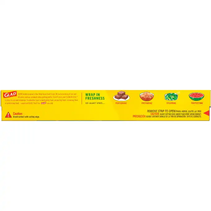 Glad Cling ‘N Seal gives you 2X Freshness Protection with an airtight seal and moisture block technology. Glad Cling ‘N Seal extends your food’s freshness by keeping air out with a superior seal cling versus the national brand, keeping your foods fresher longer based on moisture loss in produce versus no protection. Its easy to use roll makes protecting your favorite foods fast and simple. This food wrap is easy to handle and grips to a variety of surfaces, such as glass and metal, making it useful for portioning, preparing, steaming and protecting. Cling ‘N Seal can be used outside of the kitchen too. It is great to use for preventing leaks in toiletries when traveling, wrapping wet paint brushes to use later, or keeping items in drawers when moving. Glad Cling ‘N Seal is made without BPA and is microwave safe. Glad protects and seals with ease.
