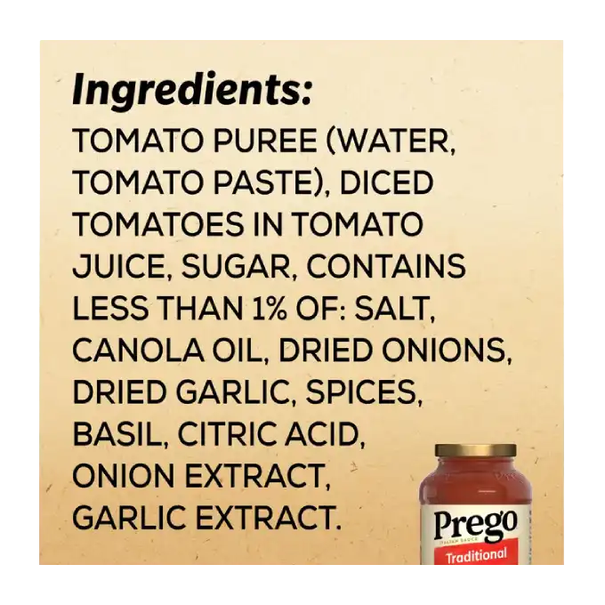 Be the hero at dinner with Prego® Traditional Pasta Sauce. Versatile and delicious, this classic red sauce features the rich, sweet taste of vine-ripened tomatoes balanced with flavorful herbs and seasonings, perfect for any recipe. This pasta sauce has a taste everyone loves and a thick texture that doesn’t water out, making it a perfect pairing with any pasta. Prego® pasta sauce is gluten free, vegan and made without artificial colors or added MSG for a spaghetti sauce you can feel good about. Top off any pasta with this Prego® Italian sauce for a quick, family-pleasing meal, or use it as a base for your favorite recipes. The tomato sauce jar top is easy to close and store in the refrigerator for leftovers. Give your family the taste everyone loves with Prego®.
